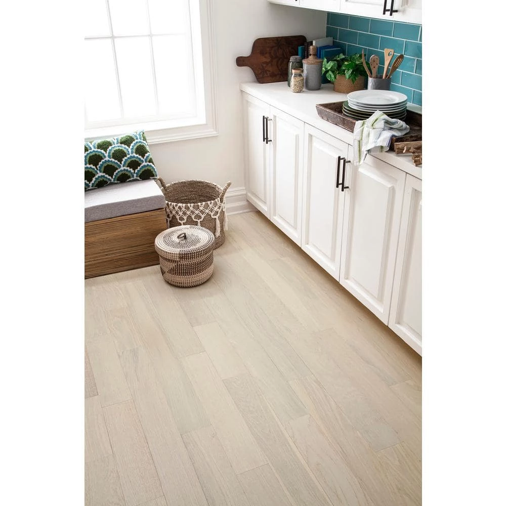 - Easy to install click locking hardwood with attached underlayment, no acclimation needed