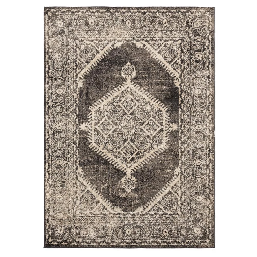 Add a simple traditional style right into the comfort of your own home with this classic rug. This gorgeous rug features a striking oriental design with colors of walnut brown and onyx and a thick detailed bordered edge for the perfect addition to any room. Machine made in Turkey with polypropylene yarn for stain resistance and lasting durability.