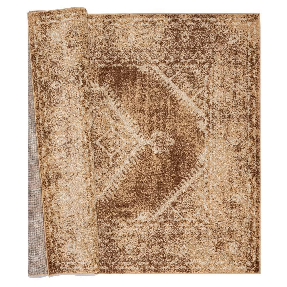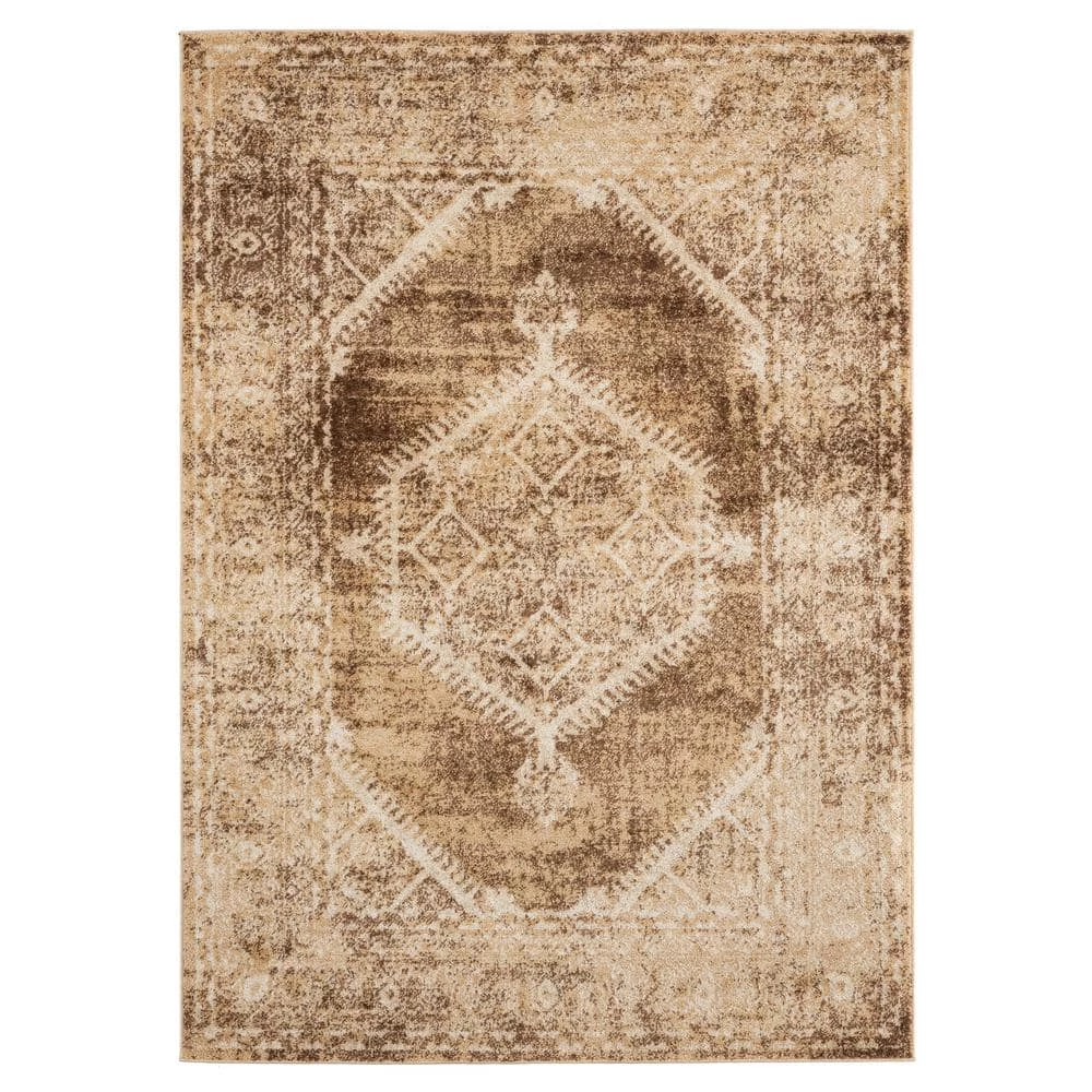 Add a simple traditional style right into the comfort of your own home with this classic rug. This gorgeous rug features a striking oriental design with colors of light brown and ivory white and a thick detailed bordered edge for the perfect addition to any room. Machine made in Turkey with polypropylene yarn for stain resistance and lasting durability.